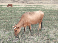 Продаю корову из-за переезда, привозная порода , отелилась 3 раза ,в день дает от 10-12 л молока , цена 95т , реальному покупателю торг , находится в с Кантышево , номер для связи 89610257416